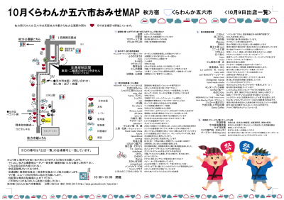 枚方宿くらわんか五六市は毎月第2日曜日に大阪府枚方市で開催される手作り市です。200店を超える個性豊かなお店が数多く出店いたします。枚方宿歴史街道を散策しながら手作り市をお楽しみください。