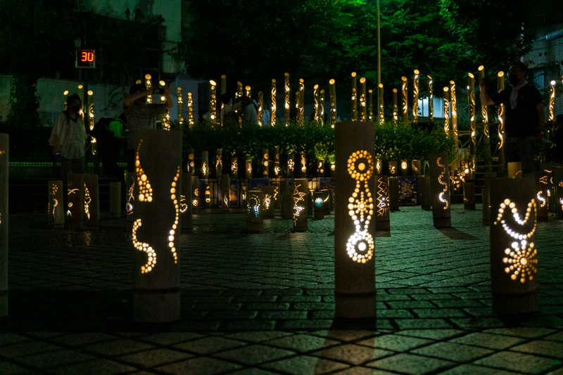 灯籠に使用している竹は、枚方市穂谷地域を中心に活動されている(NPO法人)森林ボランティア 竹取物語の会の皆さんにご協力いただきました。